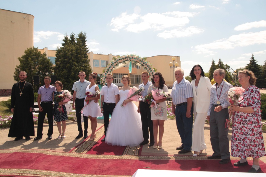 8 июля в день памяти святых благоверных князя Петра и княгини Февронии Муромских, отмечают День семьи, любви и верности. Торжественная церемония проходила у фонтана на площади славы поселка Прохоровка.